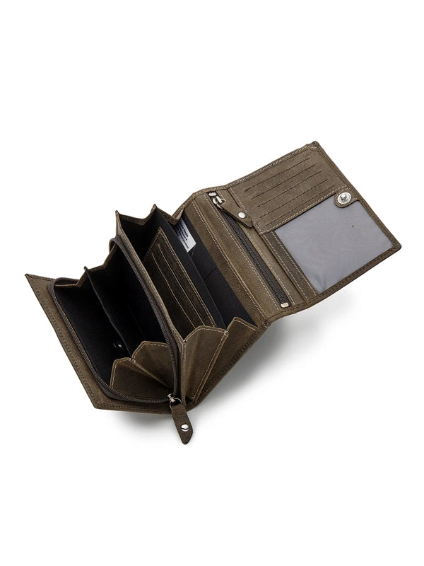 Eingearbeitete RFID Folie, Querformat, neun Kartenfächer, Klarsichtfach, drei Einschubfächer, ein Reißverschlussfach, zwei weitere große Fächer, ein Scheinfach, doppeltes Münzfach mit Reißverschluss