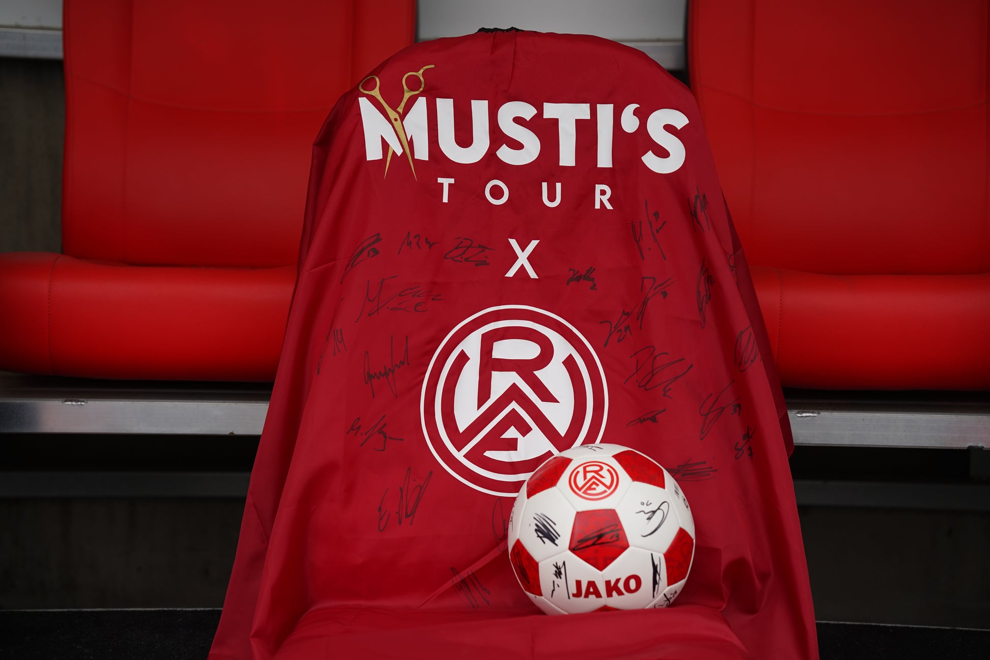 Musti-signierter Friseur Umhang + signierter Ball | Essener Chancen